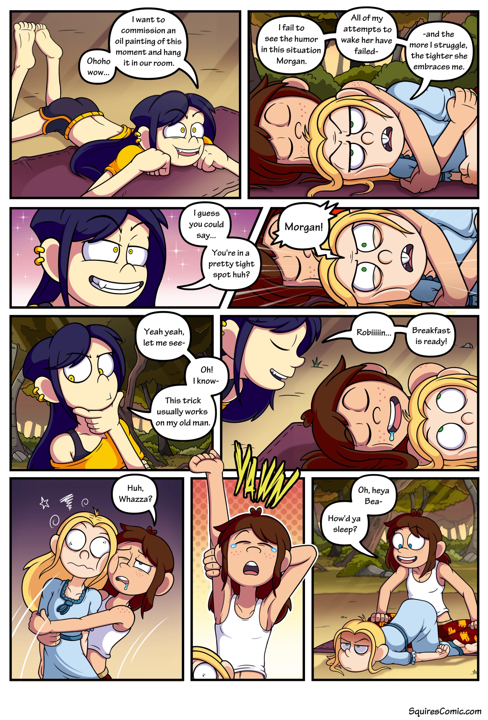 When the breakfast line doesn't work, Morgan usually gets good results by just running and leaping onto her dad. This was a lot cuter before her giant growth spurt.